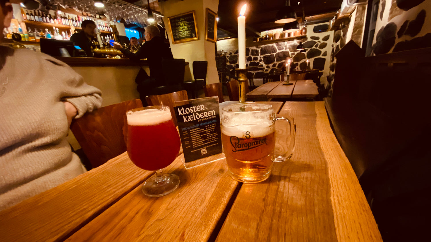 Når du træder ind i Klosterkælderen, bliver du mødt af dunkle træpaneler, levende lys og en rustik, autentisk pubstemning. Vores kælder er en tidslomme – et sted, hvor du kan slippe hverdagens stress og bare nyde en kold øl i godt selskab.